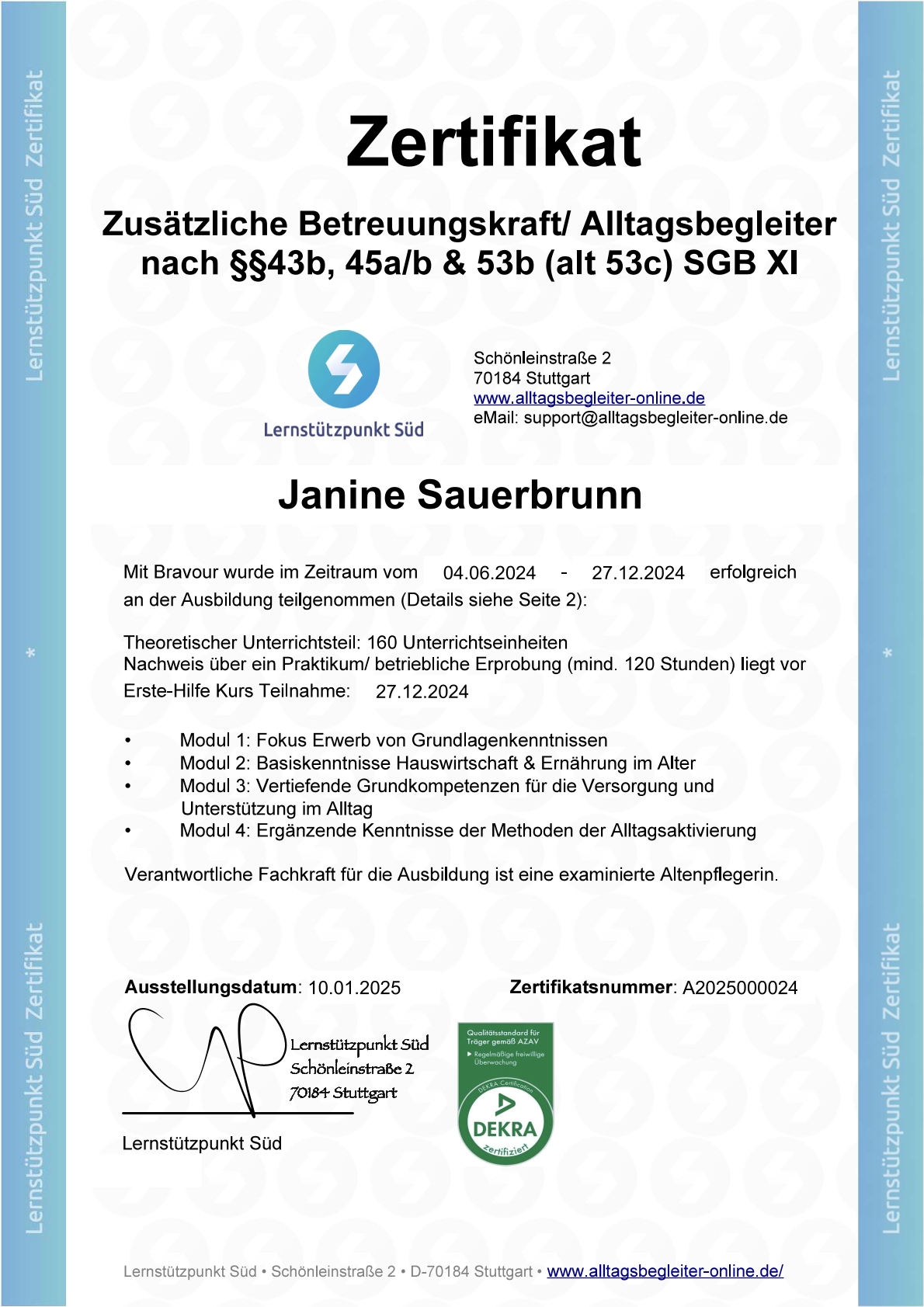 Wir sind Janine Sauerbrunn und Bianca Estergombi und wir sind zertifizierte Alltagsbegleiter.